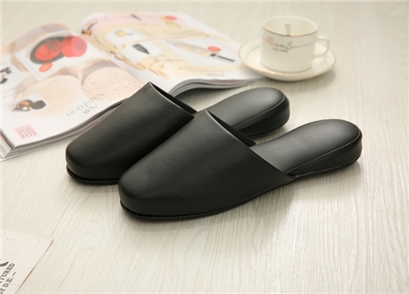 出口日本防水防污包头合成皮革PU地板地毯居家 防滑拖鞋 防菌防臭 黑色 |