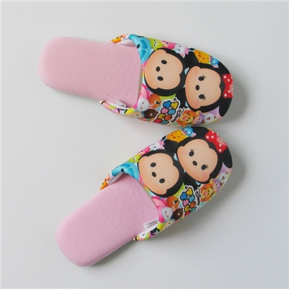 出口日本 全棉 居家鞋地板鞋胶底防滑 米妮米奇卡通图 包头拖鞋 粉红色 |