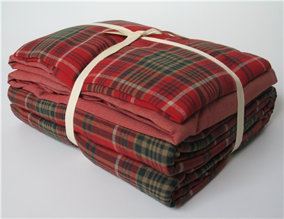 床上四件套双面绒加厚保暖法兰绒法莱绒被套床单 红格 床笠款 |